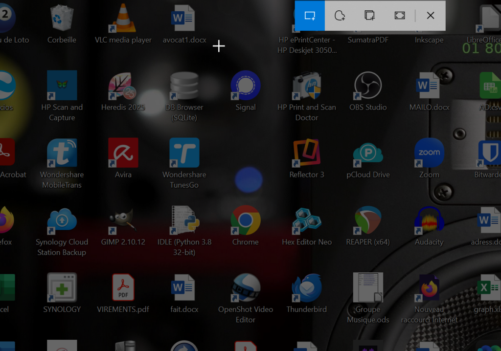 Là vous réduisez votre écran de messagerie, vous visualisez votre bureau et vous appuyez simultanément sur les touches WINDOWS – MAJUSCULE – S
