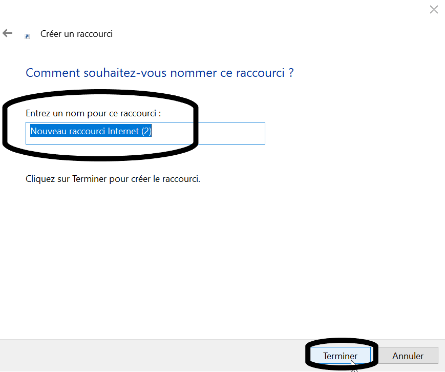 Donnez un nom à votre raccourci comme « Abeilles sur Wiki » ou ce que vous souhaitez puis cliquez sur Terminer.