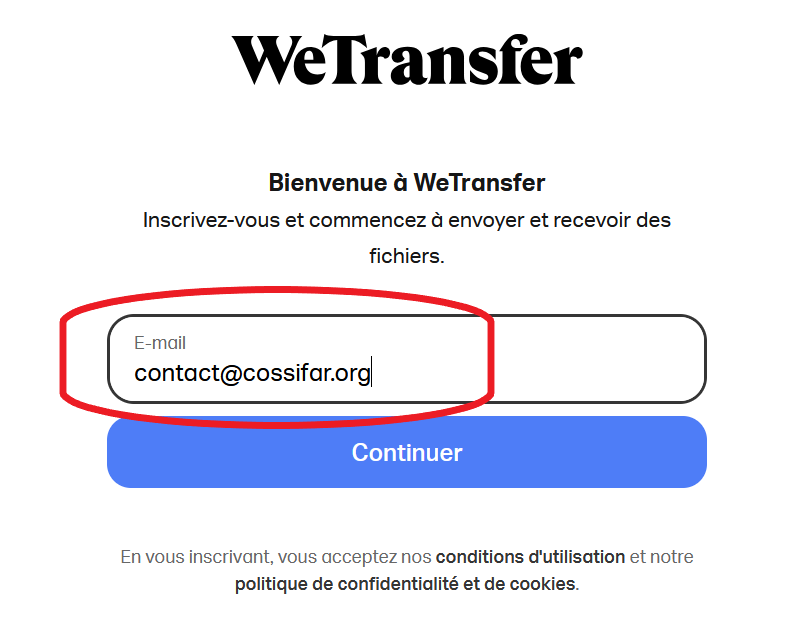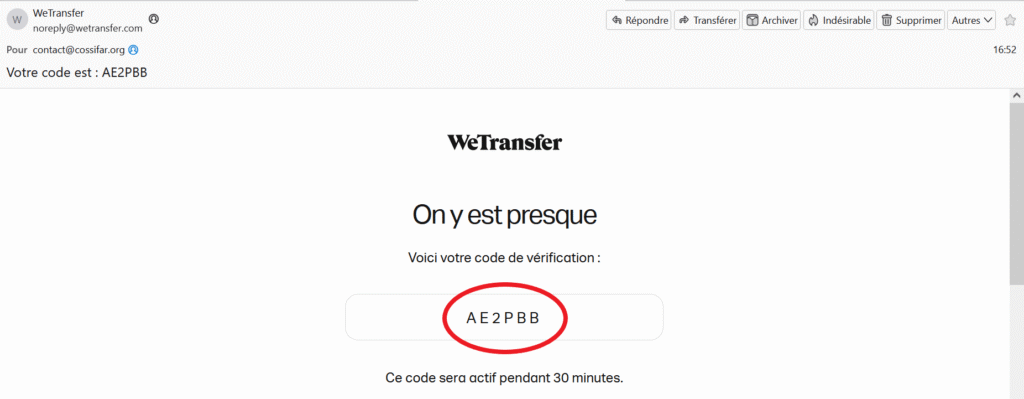 WeTransfer vous envoie un code sur le mail que vous avez indiqué.