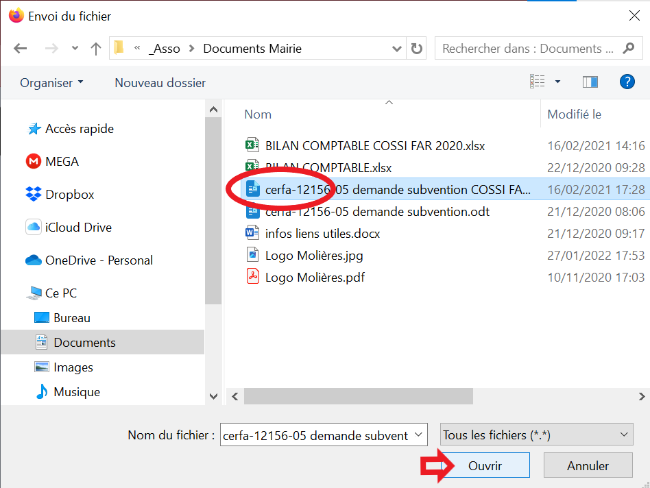 Sélectionnez le fichier à envoyer puis cliquez « ouvrir »
