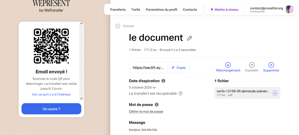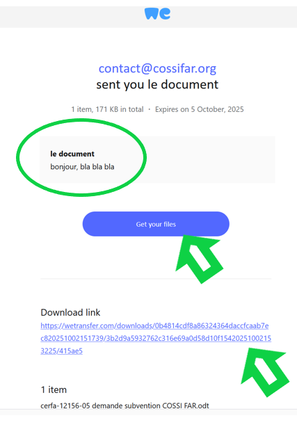 Votre correspondant n’aura qu’à cliquer sur le lien pour télécharger la totalité de l’envoi sur son ordinateur.